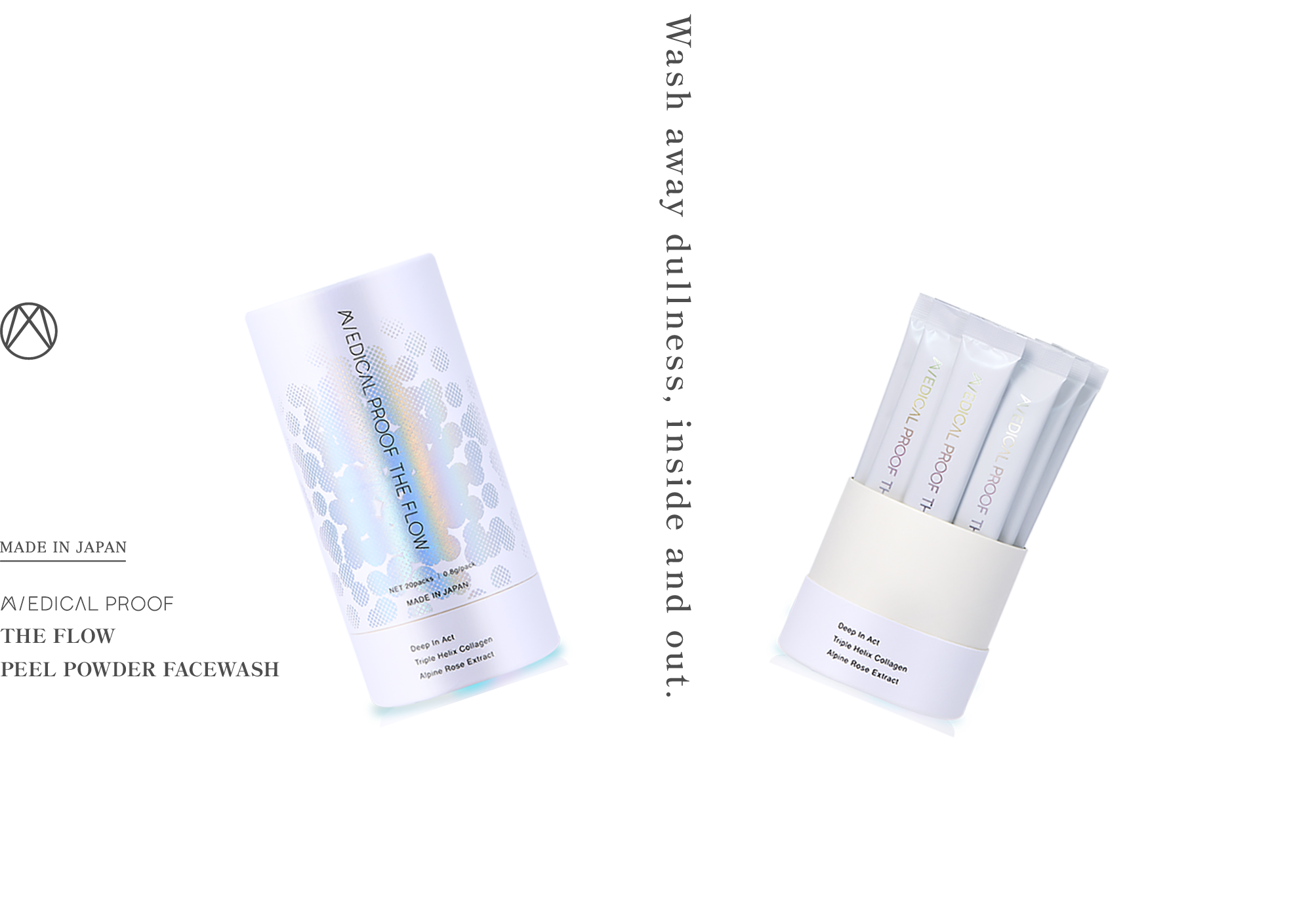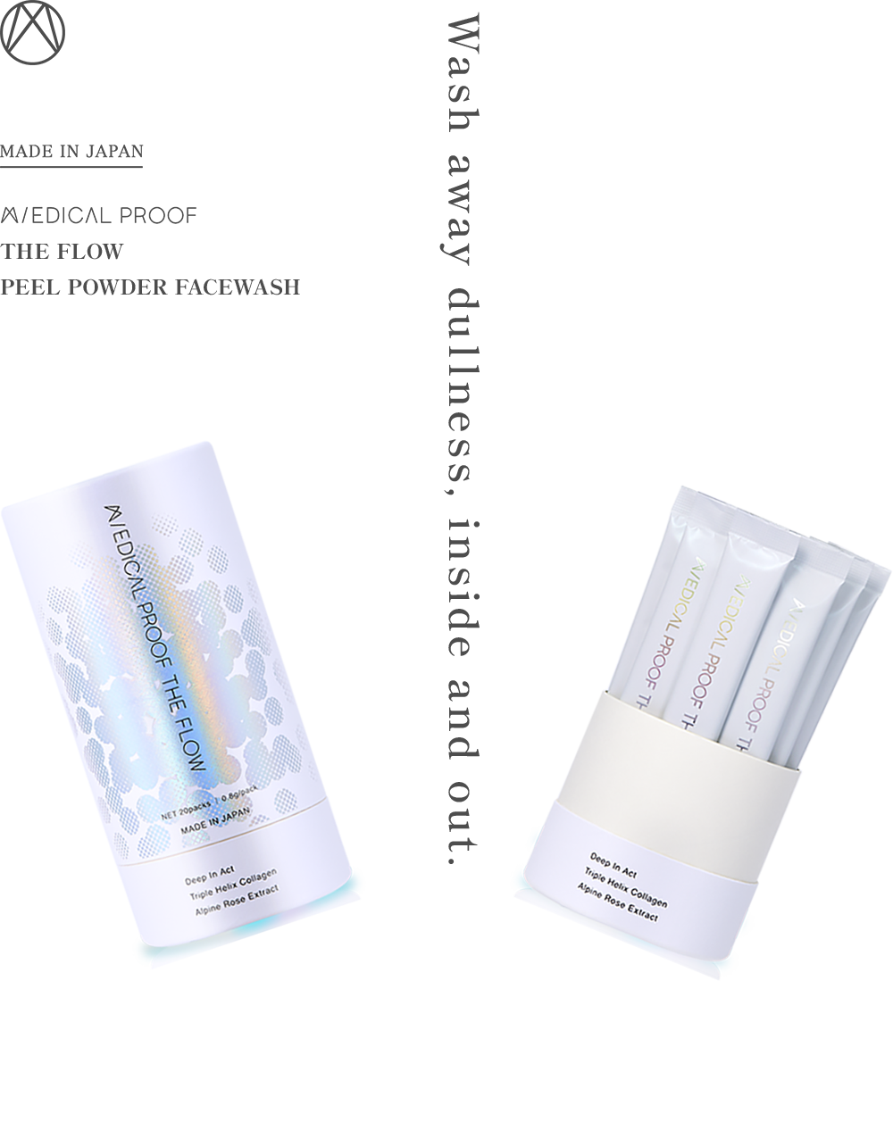M/EDICAL PROOF THE FLOW focuses on the power of enzymes.Just by applying foam to the skin, it removes only the dirty keratin, while simultaneously tightening the skin to make it smooth and even, allowing the light to reflect uniformly, giving you a porcelain-like smoothness.